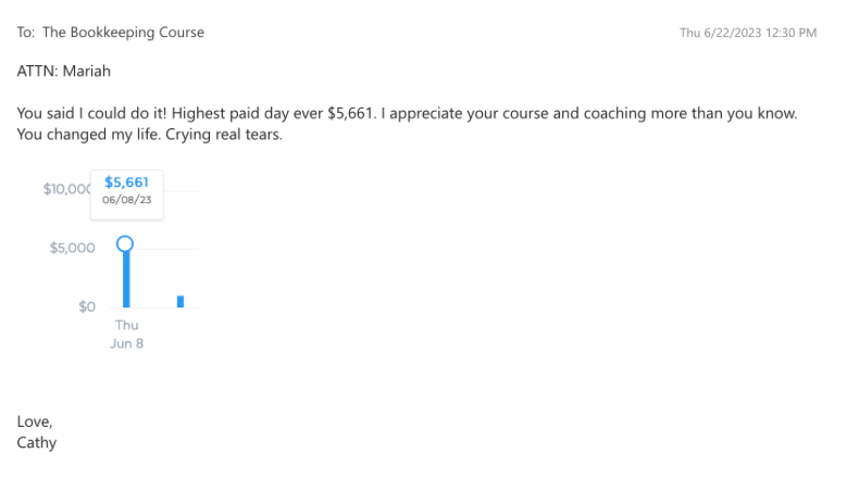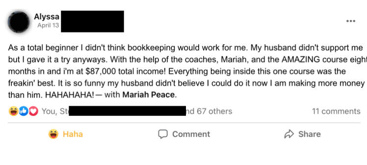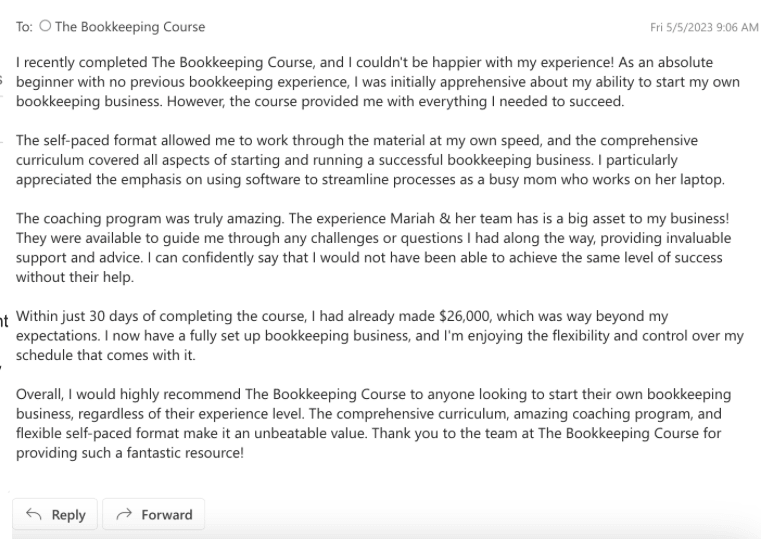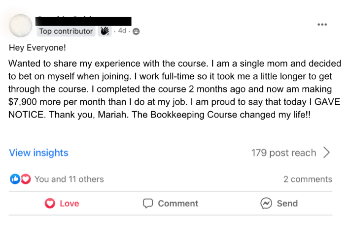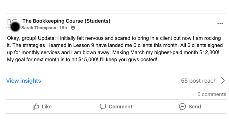 I have created an online course and coaching program to give others a blueprint to learn in 90 days what took me 7 years of trial and error. I have helped over 500 people start and scale bookkeeping businesses from home, and I can help you too!